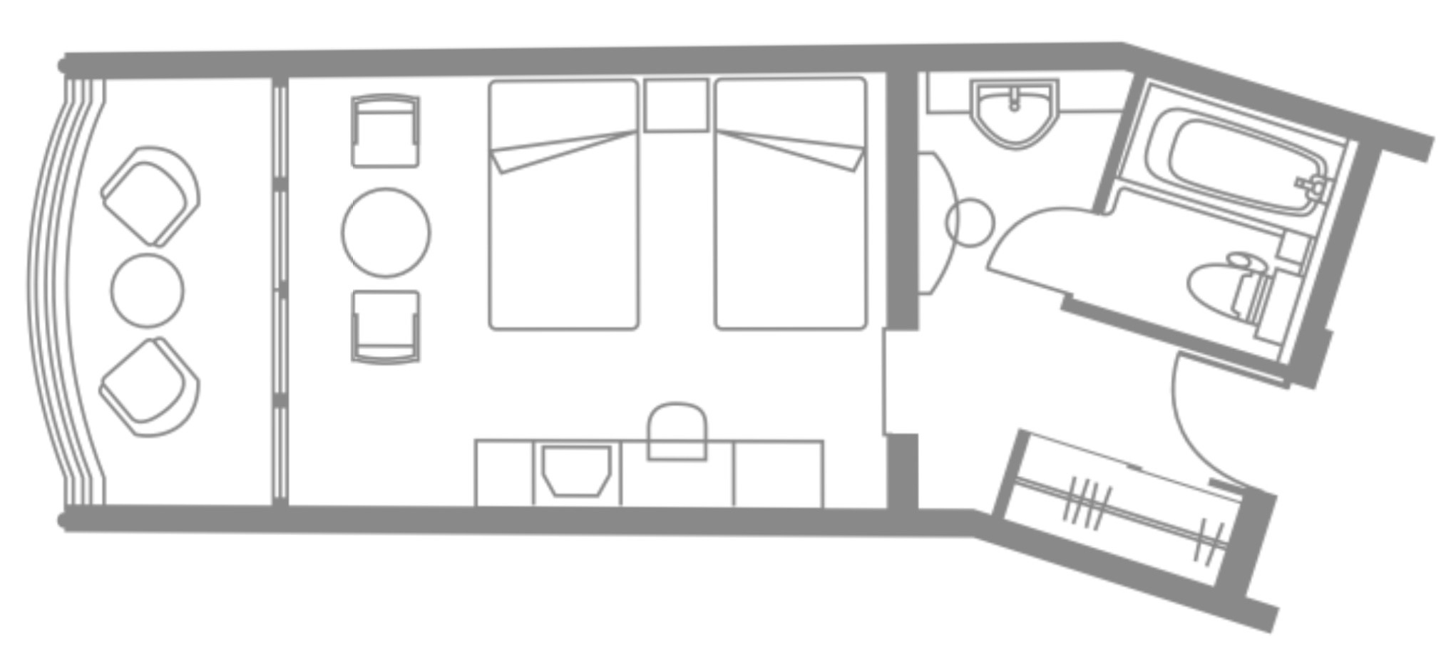 楼层:1F 客房面积:30sq.m/322.9sq.ft. 阳台:6.9sq.m/74.3sq.ft. 床尺寸:120cm×203cm×45cm 容纳人数:2位客人