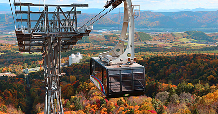 Furano is known as one of the most beautiful scenic spots in Hokkaido’s vast natural landscape. The autumn forest, with a vibrant combination of red, vermilion, and yellow hues, is an especially breathtaking sight. Take a ride on the Furano Ropeway that soars up towards the sky above the colorful foliage and fully immerse yourself in the unique autumnal beauty of the northern region.
