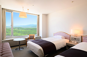Total number of guest rooms: 407. The premium guest rooms offer panoramic views of the majestic Tokachi Mountain Range and the Furano Basin, which change with the seasons. Rooms on the west side offer views of the lush forest, which vary with the seasons from fresh greenery to autumn leaves.