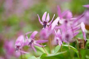 Visitors can enjoy the fresh greenery of beech trees against the lingering snow, the clusters of dogtooth violet flowers near the ropeway base station, and alpine plants such as mountain sakura, willow-leafed magnolia, and Grandiflora Rosea.