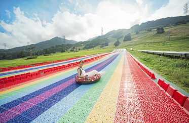 You can enjoy a variety of activities such as the newly introduced "Rainbow Slider," a large, colorful slider approximately 100 meters long, and the 50-meter-long "Naebashan!” waterslide.