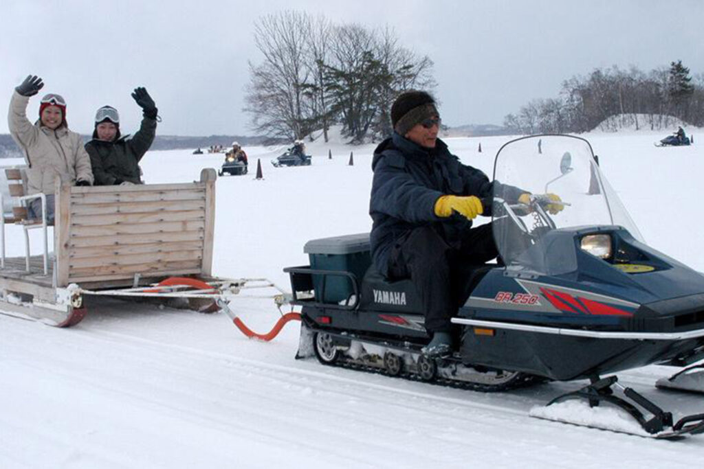 乘坐由雪地摩托牵引的雪橇,悠然穿越约2公里的雪原,近距离欣赏大沼湖迷人的冬季景色。