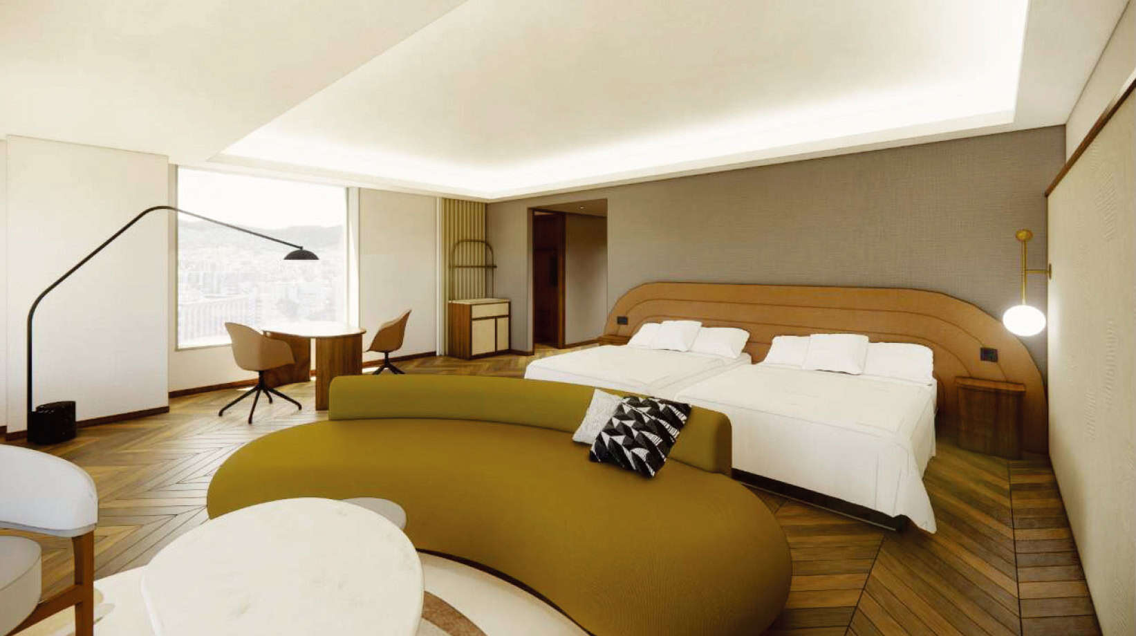 229间客房均为海景房。置身于充满海洋气息的室内设计中,穿过令人联想到洞穴的拱形走廊,便可欣赏随着时间推移而不断变幻的博多湾、玄界滩以及福冈市区的极佳景致。