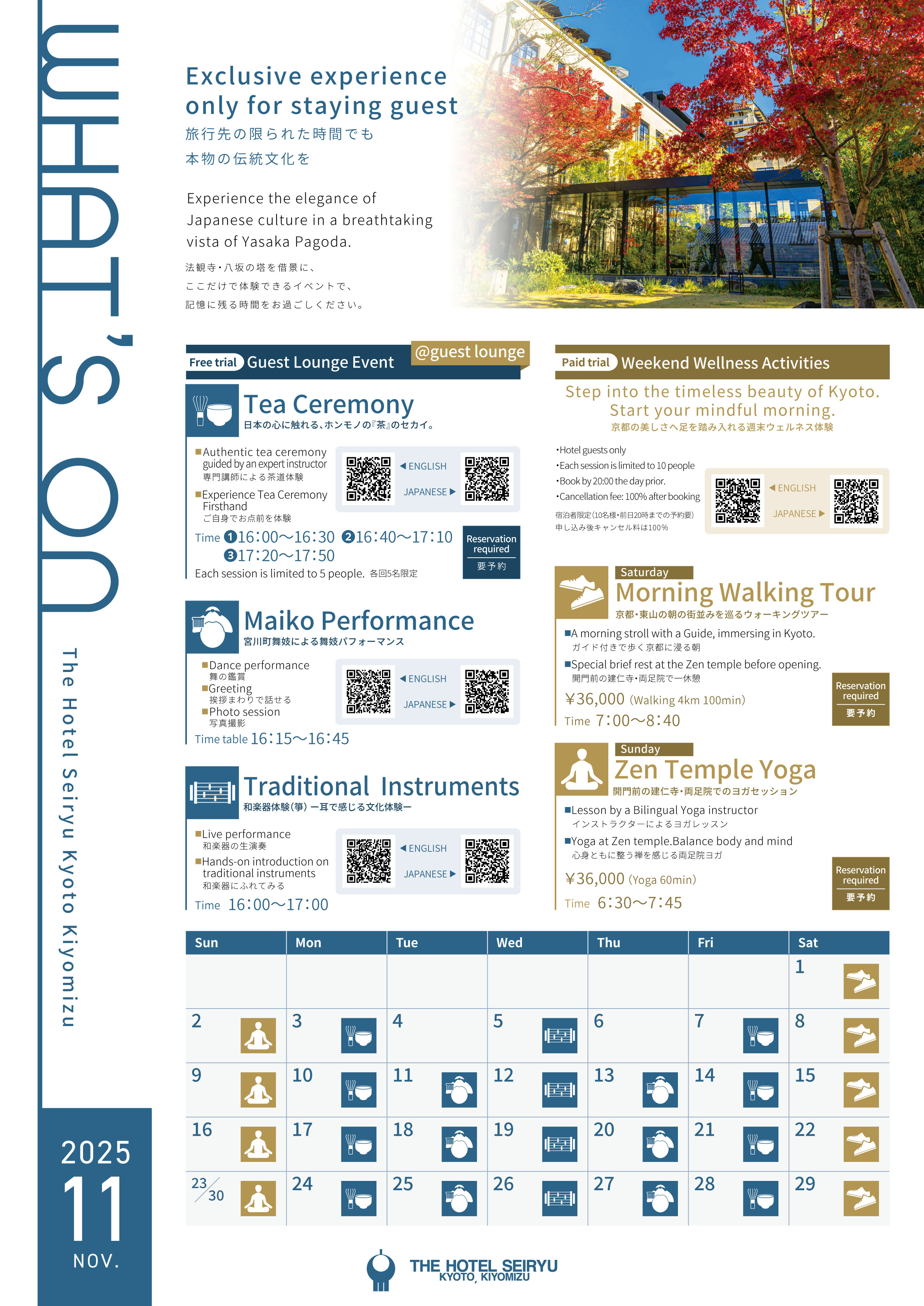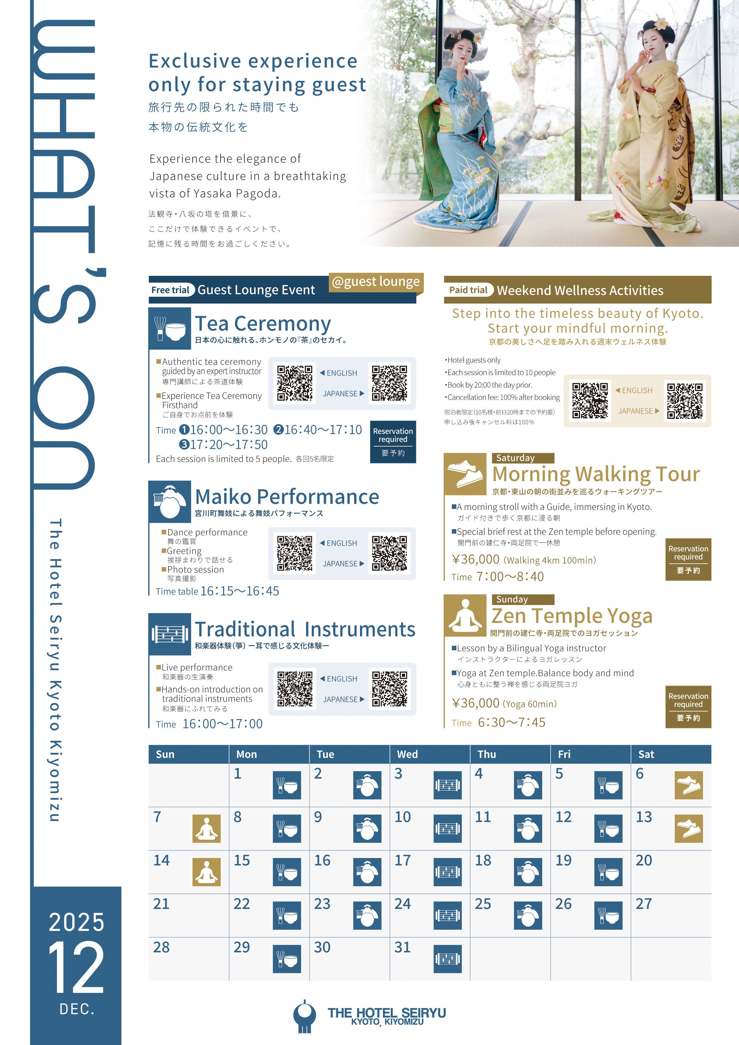 活动(舞妓表演/茶道/传统乐器)免费(仅限过夜客人)