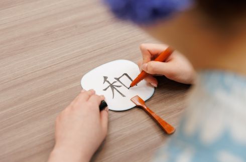 用毛笔在小内和扇上写字,制作独一无二的内和扇。
