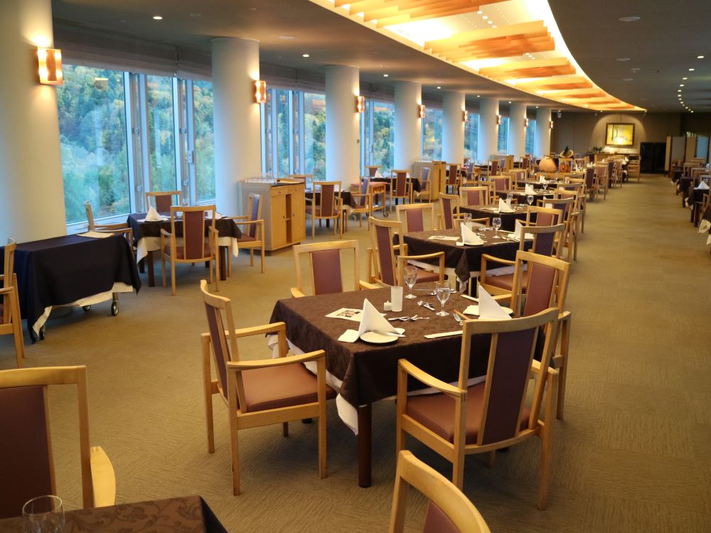 位于顶层的主餐厅以使用时令食材烹制的西式套餐菜单为主,还提供当地特色葡萄酒。