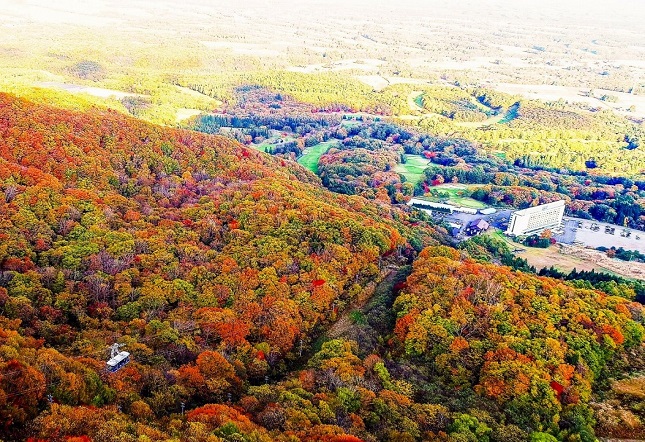 在一片火红的枫叶包围下搭乘缆车是秋季才有的体验!在标高730公尺的山上缆车停靠站旁设有让狗狗也能尽情奔跑的跑道,提供宠物们也可以一起享乐的空间!甚至还可以爬上一般不开放登山的标高1,409公尺高的高仓山山顶!