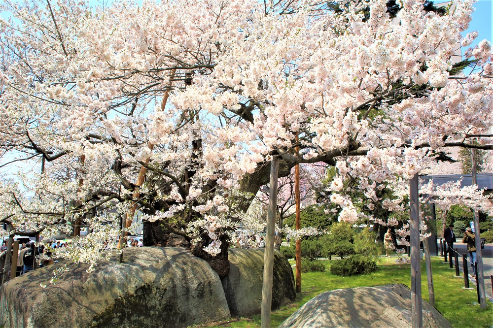 这棵从岩石裂缝中长出的石割樱约有360至400年历史,这棵石割樱是国家天然纪念物的樱花树种。比盛冈市内的樱花树开得早,树干週长4.6米,树高10.6米,树枝长度18.8米,景色十分壮丽。