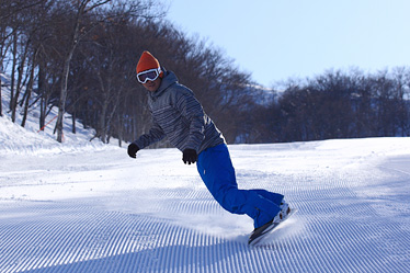 搭乘穿梭巴士来到八海山滑雪场游客中心后,便可在二楼租赁最新型号的单板或双板滑雪装备。