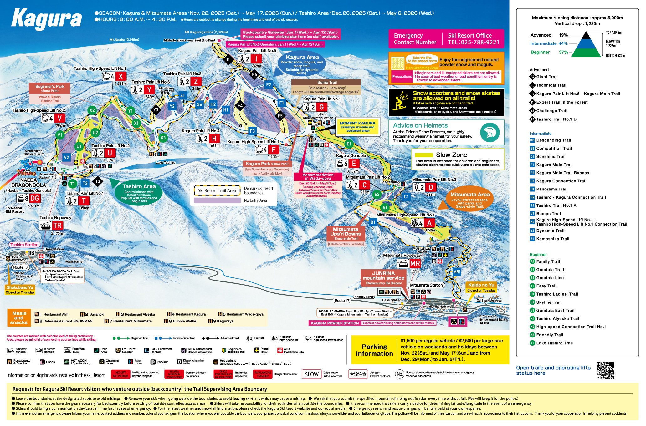 | 神乐快速吊椅1号 | 4 | 1,200m | 8:30A.M. - 3:30P.M. |